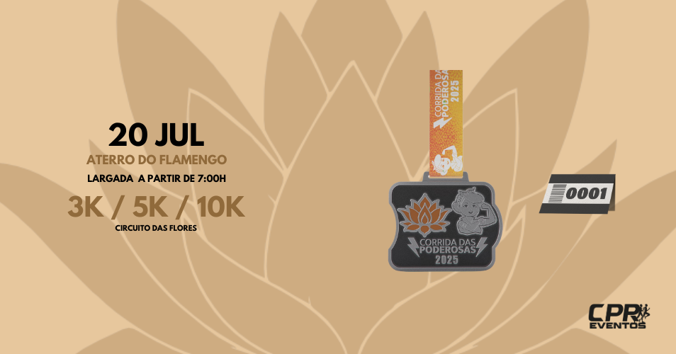 A 2ª Etapa da Corrida das Poderosas 2025, Circuito das Flores, será realizada no dia 20/07/2025 no Aterro do Flamengo, em frente ao Monumento aos Pracinhas, para as distâncias de 10Km e 5Km para Corrida e 3Km para Caminhada.